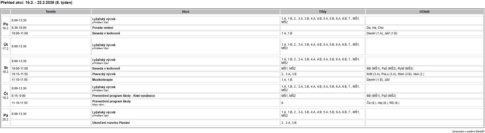 Přehled akcí: 16.2. – 22.2.2026 (8. týden)