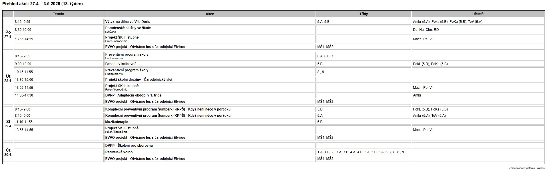 Přehled akcí: 20.4. – 26.4.2026 (17. týden)