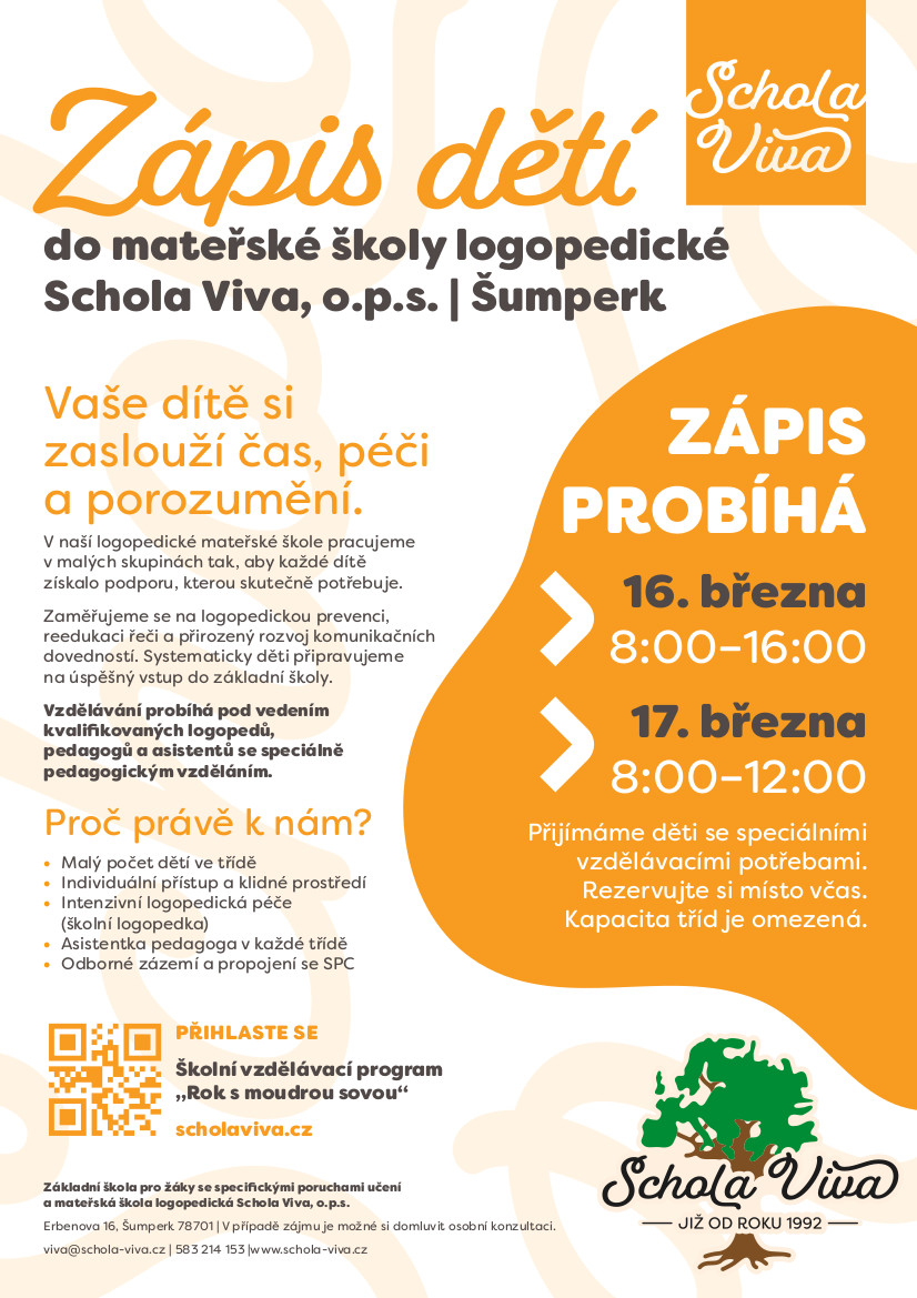 Schola Viva – Plakát – Zápis do MŠ 2026/2027